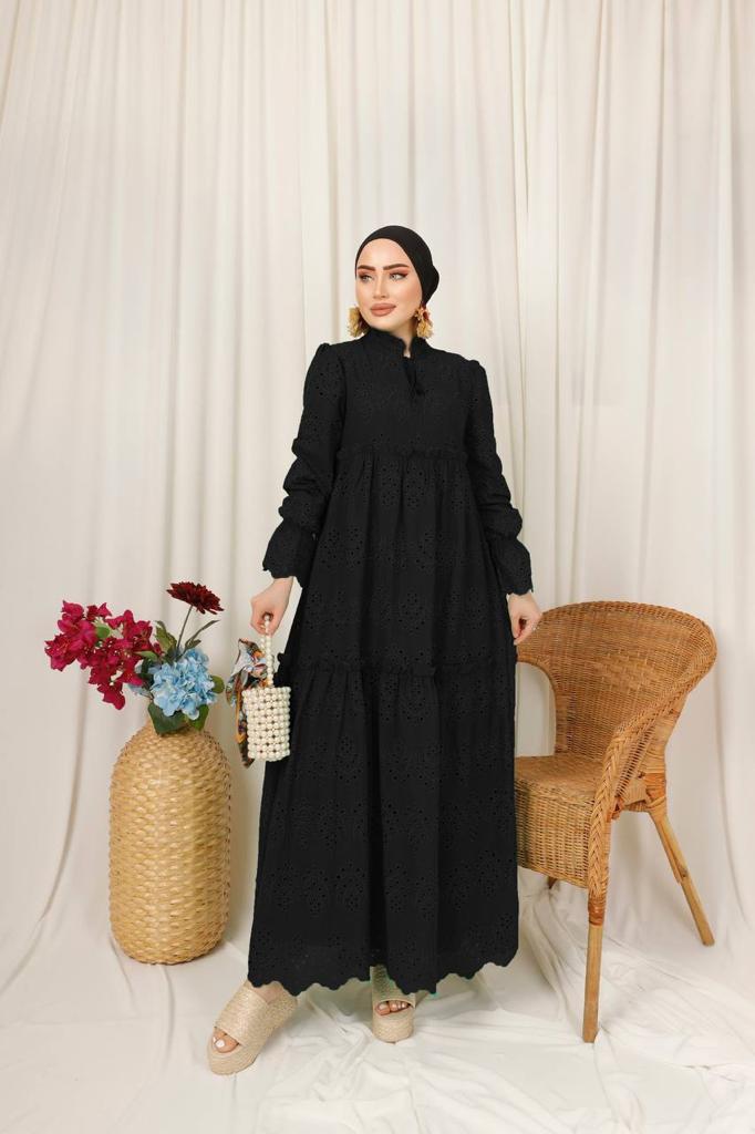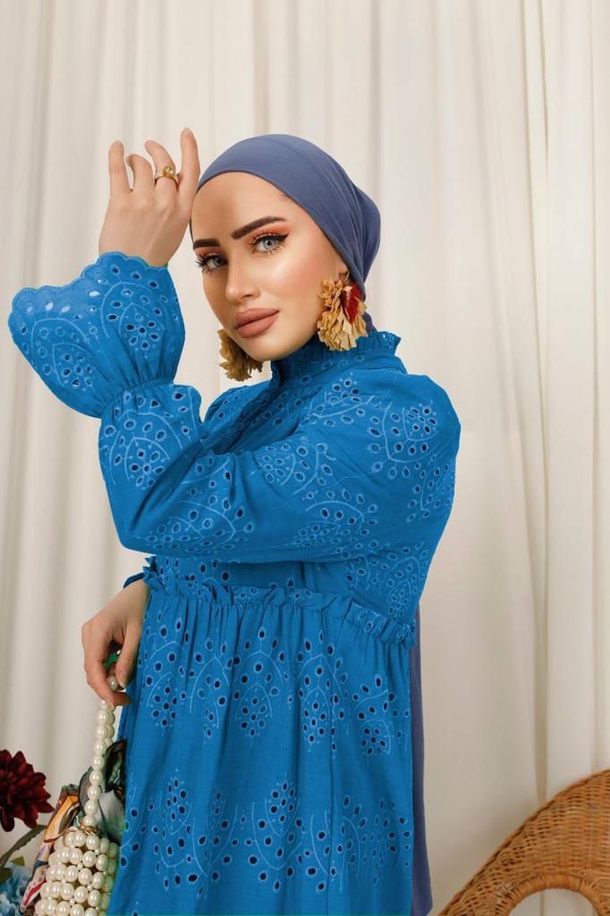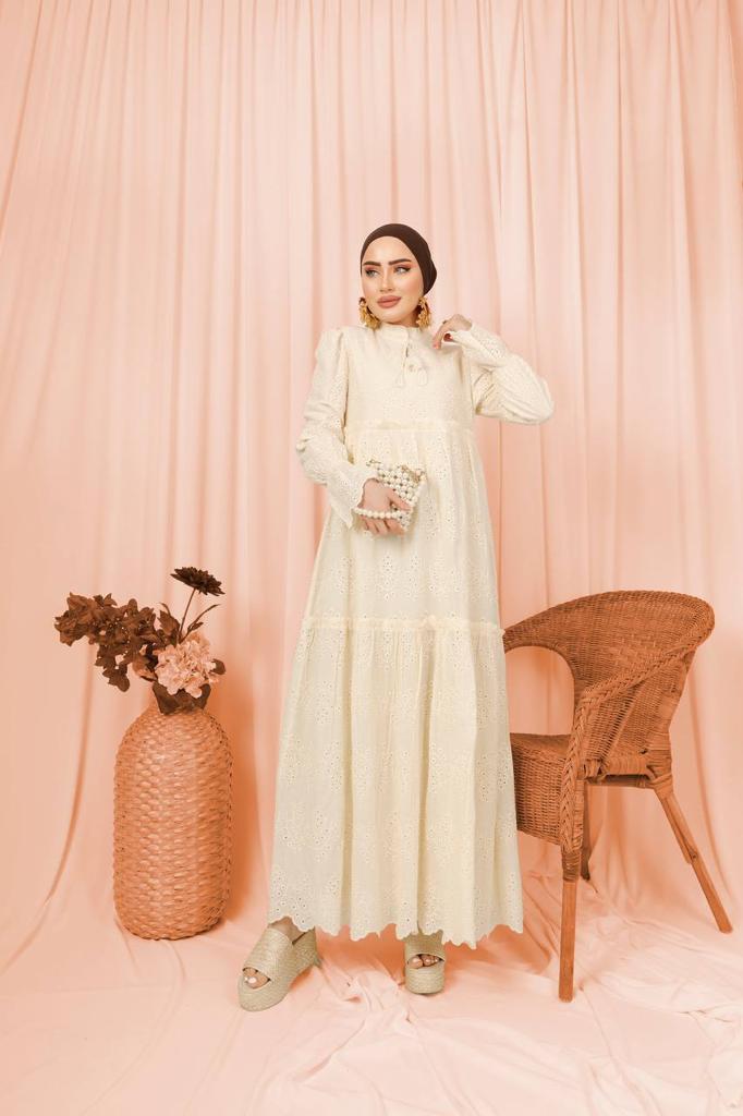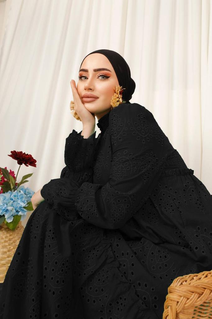 The Shahd dress features a structured silhouette crafted with elegant sleeves, designed to flatter the body’s natural curves. The fabric is lightweight and comfortable, providing you with perfect coverage. A perfect choice for special occasions.