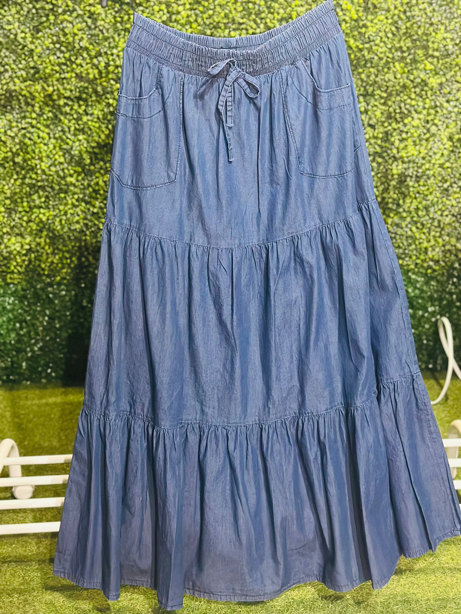 Introducing our new Monica Jeans Skirt! Made from durable denim, this skirt is perfect for everyday wear. The classic design and comfortable fit make it a must-have for any wardrobe. Upgrade your style with our Monica Jeans Skirt today!