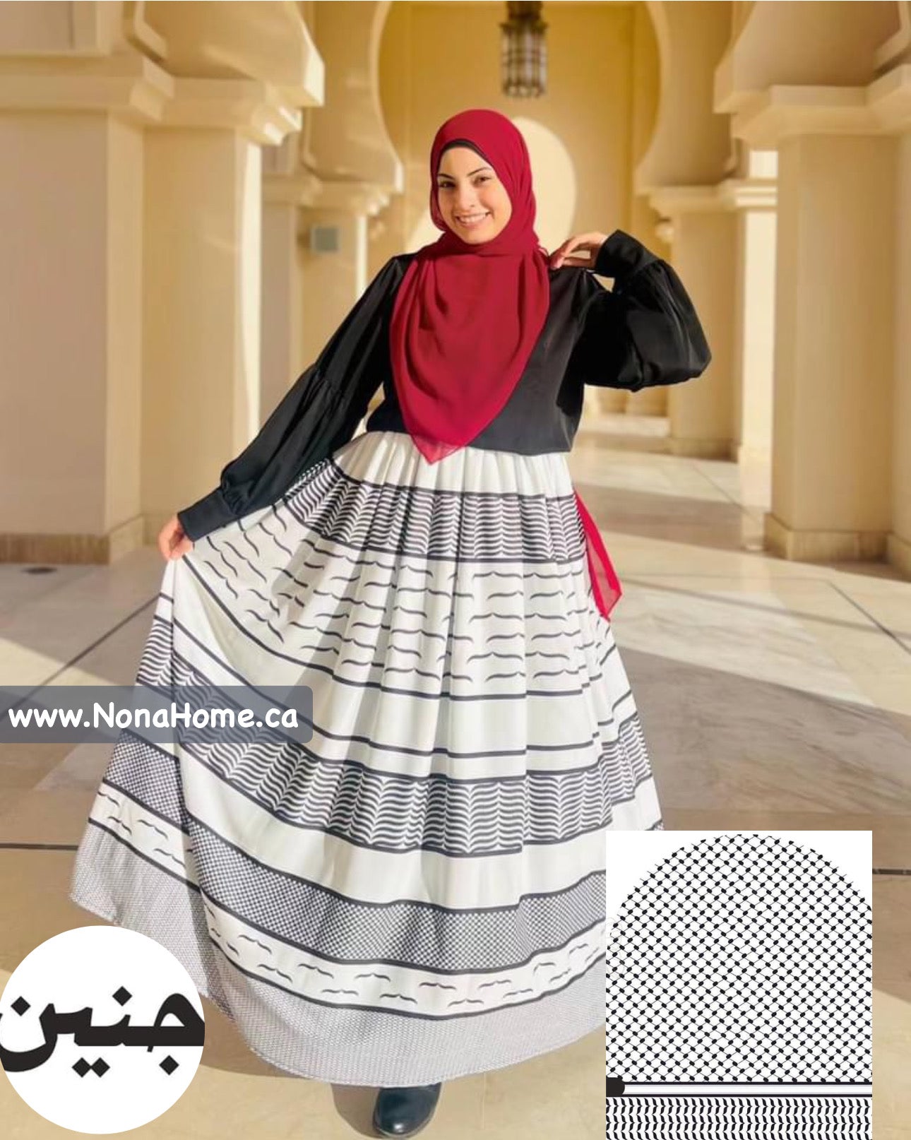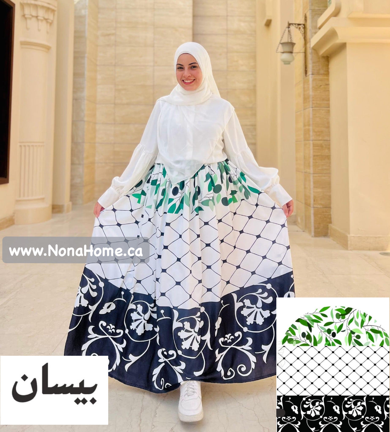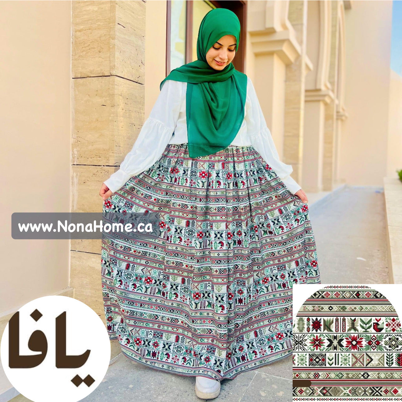 Stand out with our Palestinian Printed Skirts! At 100 cm long, these skirts are inspired by traditional Palestinian motifs from 6 cities. Plus, half of the profits go towards supporting Palestine. Show off your unique style with a skirt that gives back!