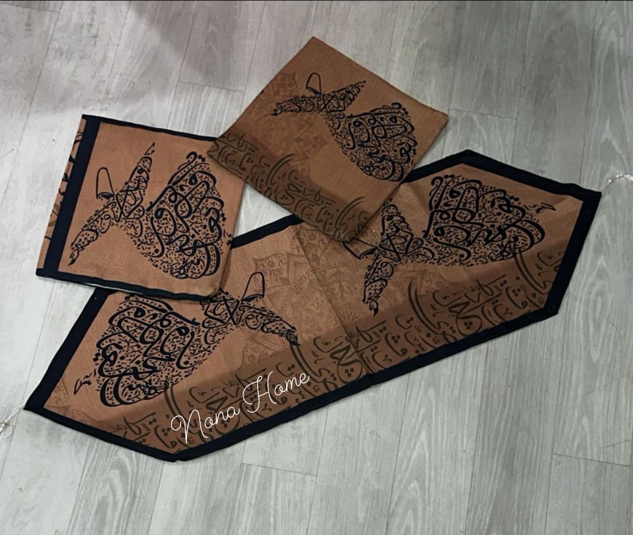 Step up your table decor game with the Runner Set 101! This brown table runner features playful Islamic shapes, adding a unique touch to your gatherings. Stand out and impress your guests with this quirky addition to your home.