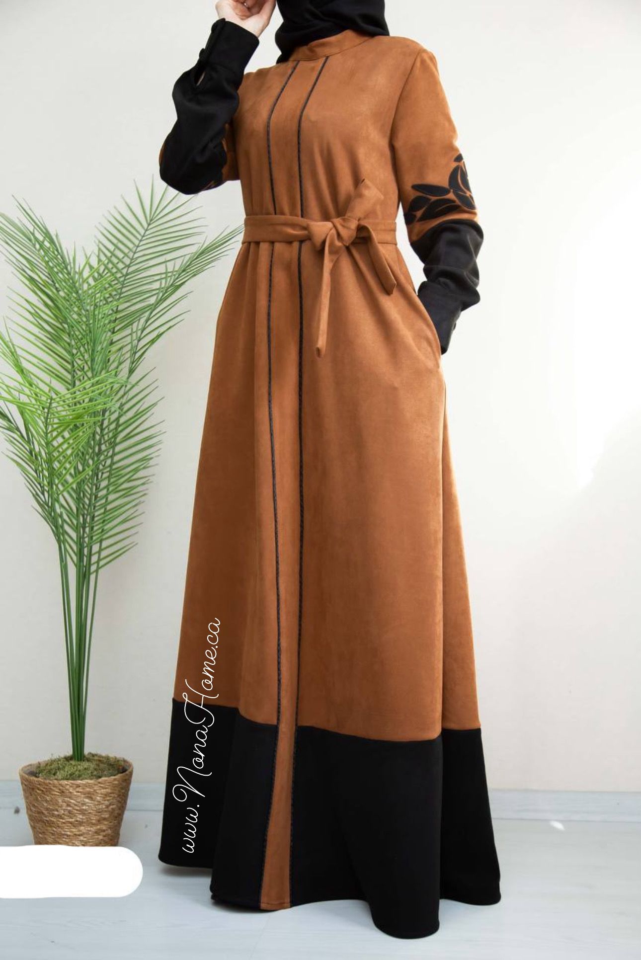 Stay stylish and comfortable with our Suede Abaya. Made from soft suede, this abaya features sleeves for added coverage. Look fashion-forward while staying cozy!