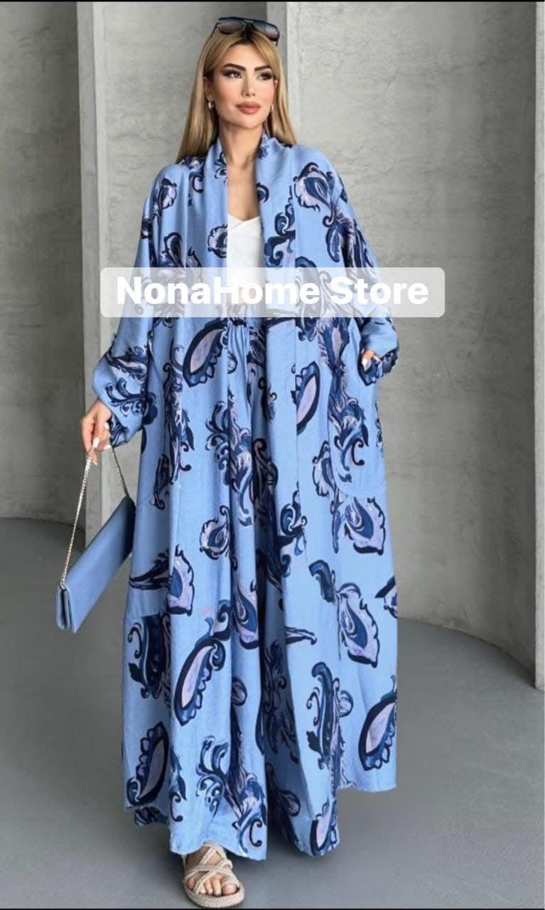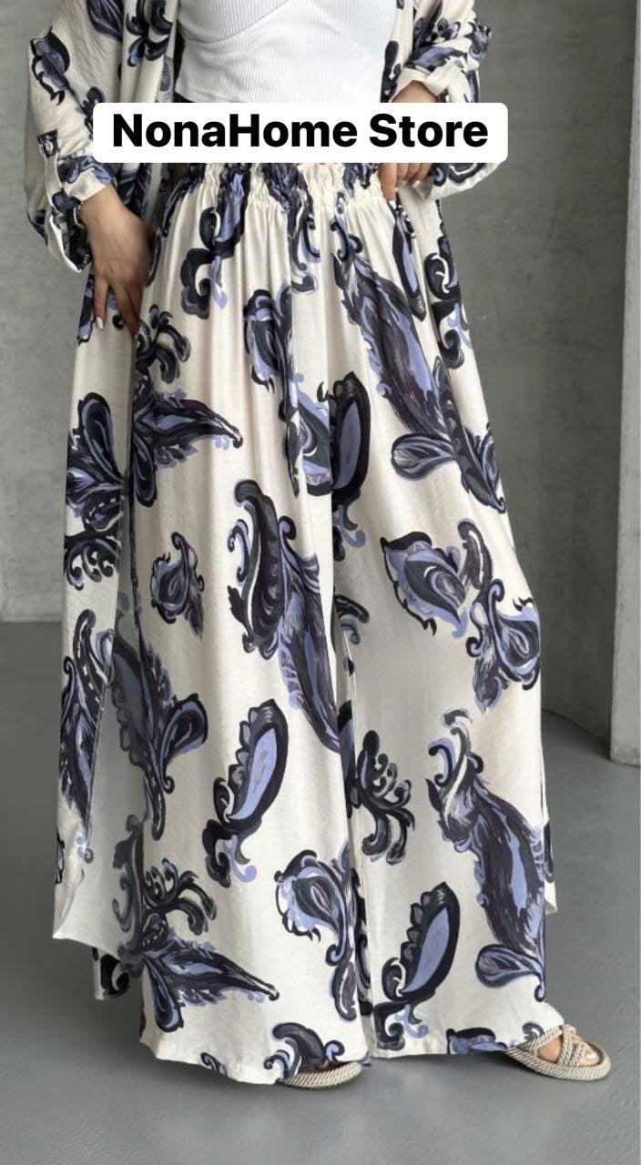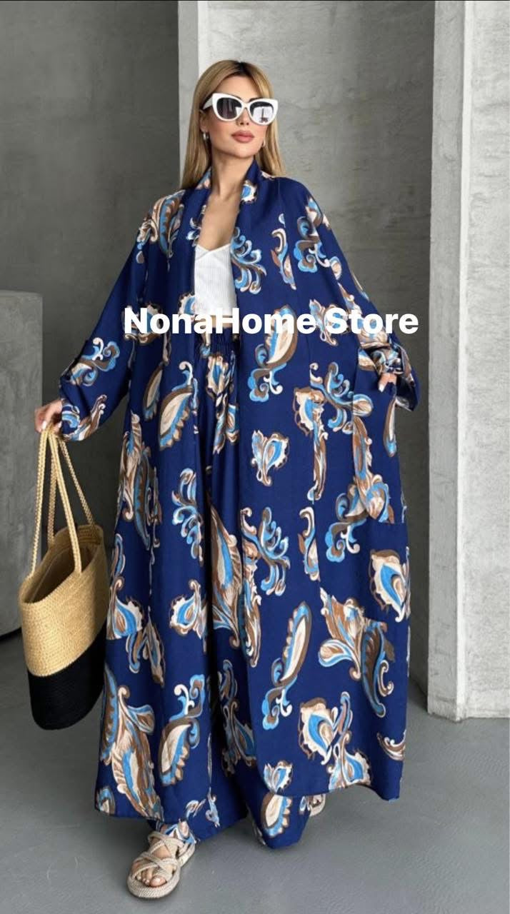 The Basma Set features a comfortable open cardigan paired with wide-leg pants, designed for effortless style and ease of movement. This set offers a relaxed fit that supports your daily activities while keeping you looking polished and put-together. Perfect for layering or wearing on its own, it combines comfort with versatility for your wardrobe essentials.