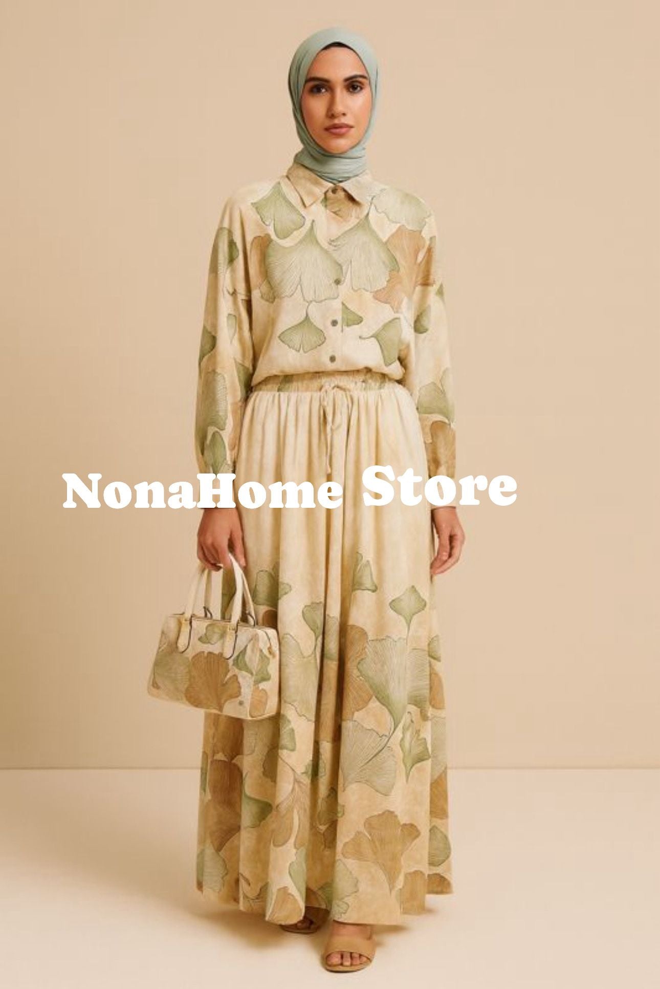 The Jouri Set includes a cropped top and a flowing skirt, blending comfort with elegance. This refined outfit is crafted to boost your confidence and poise. Its gentle colors and modest style make it a flexible choice for your wardrobe, allowing you to effortlessly achieve a polished and graceful look.