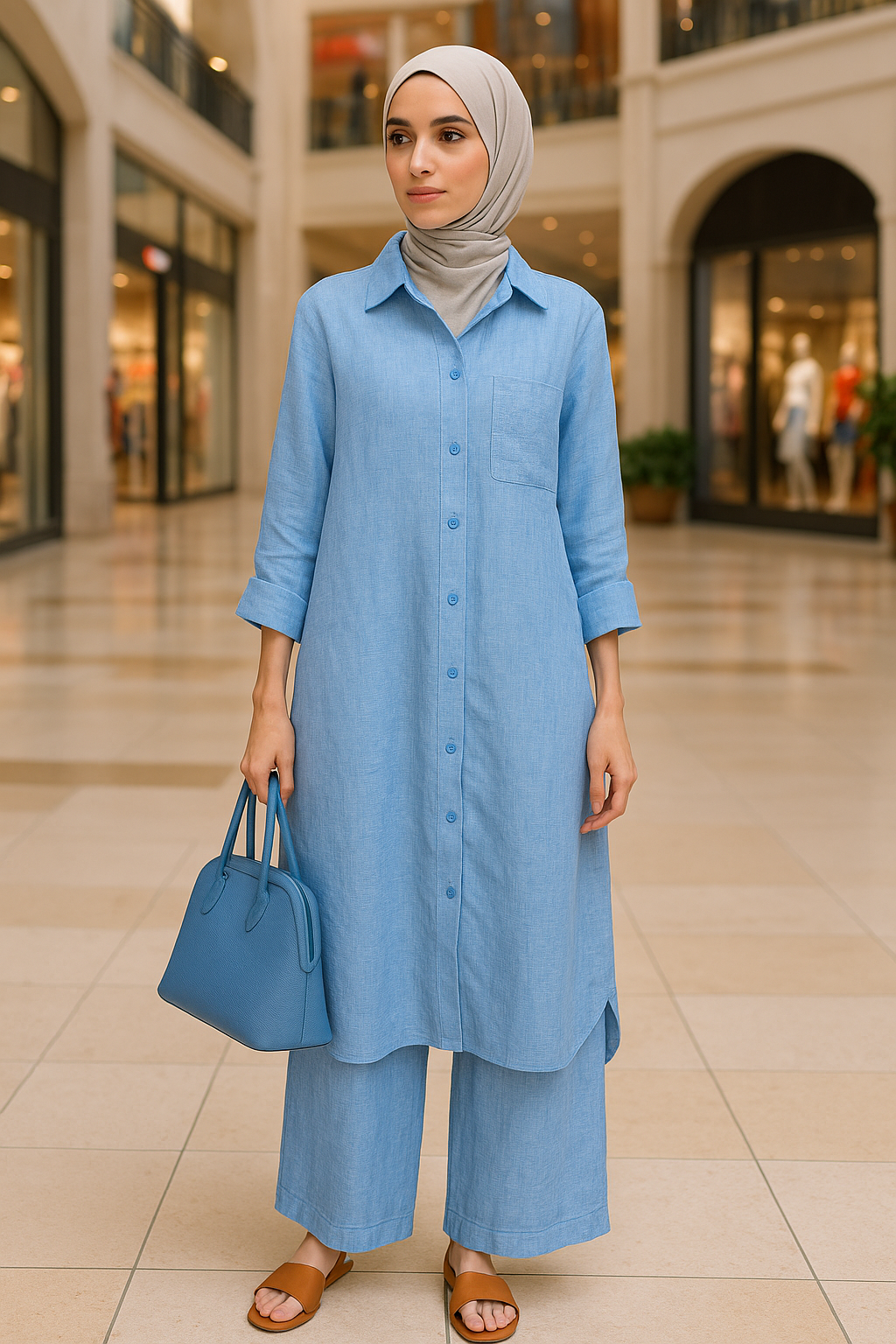 The Reem Set is designed with a roomy fit made especially for women, blending comfort and style effortlessly. Ideal for those who want freedom of movement and a flattering shape, it features relaxed pants and a coordinating top. This combination delivers a cohesive outfit that ensures comfort and confidence all day long.