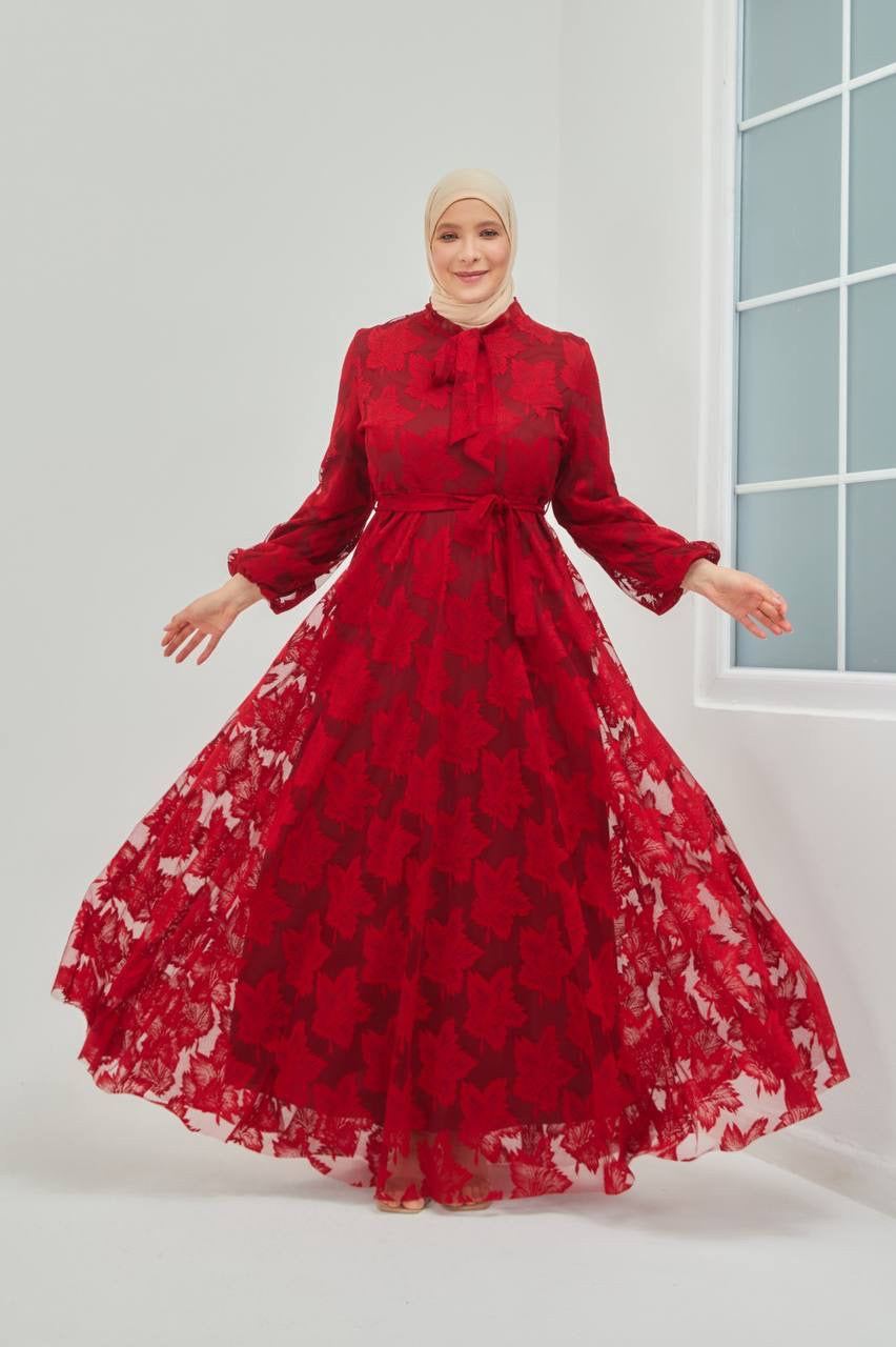 Elevate your style with our Wanda Tulle Dress. In gorgeous red and brown hues, this dress features elegant tulle and classic sleeves for a timeless look. Perfect for any occasion, this dress will make you feel confident and chic.